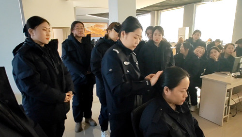 長春保安集團銀盾保安培訓學校教官,結(jié)合安檢員崗位職責,從行為禮儀、消防安全、應(yīng)急處突、隊列訓練等方面嚴作風,強業(yè)務(wù),塑形象,從每一個細節(jié)入手,耐心講解示范,嚴抓細扣,切實規(guī)范隊伍秩序和能力,讓學員學有標桿,練有標準。