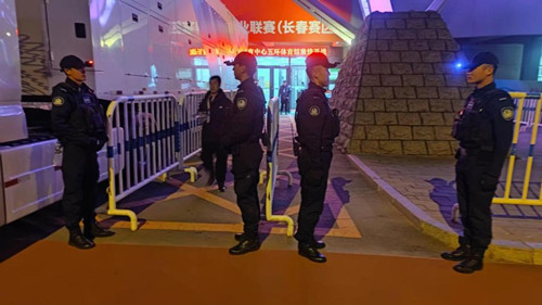 ? ? “南嶺”上演2023賽季中超聯(lián)賽的收官之戰(zhàn)后,當(dāng)天晚上七點半,“五環(huán)”的吉林東北虎23/24 CBA常規(guī)賽第六輪大戰(zhàn):吉林東北虎VS北京北控也隨之打響。中超和CBA在長春體育中心實現(xiàn)了無縫對接,無疑給安保工作帶來了更高的挑戰(zhàn)。長春保安集團派出聯(lián)勤護衛(wèi)大隊75名安保精英駐守男籃賽場,持續(xù)護航。